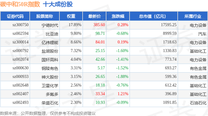 证券之星消息,11月11日,碳中和50R(480021)指数报收于2594.61点,跌0.06%,成交529.19亿元,换手率1.37%。当日该指数成份股中,上涨的有26家,鹏辉能源以7.94%的涨幅领涨,下跌的有20家,电投能源以3.66%的跌幅领跌。