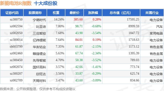 资金流向方面,新能电池R(480032)指数成份股当日主力资金净流出合计41.55亿元,游资资金净流入合计3.74亿元,散户资金净流入合计37.82亿元。成份股资金流向详情见下表:
