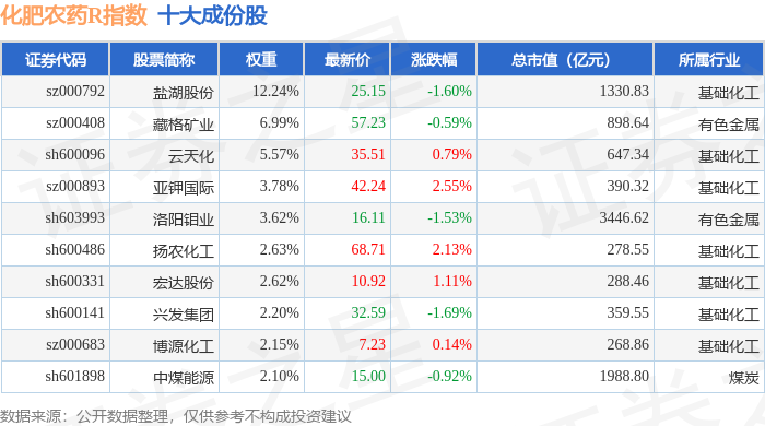 资金流向方面,化肥农药R(480035)指数成份股当日主力资金净流出合计13.27亿元,游资资金净流入合计2.87亿元,散户资金净流入合计10.4亿元。成份股资金流向详情见下表: