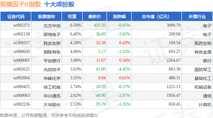 证券之星消息,11月11日,规模因子R(480055)指数报收于2337.46点,跌0.63%,成交446.04亿元,换手率1.39%。当日该指数成份股中,上涨的有17家,上能电气以5.27%的涨幅领涨,下跌的有33家,光启技术以4.45%的跌幅领跌。