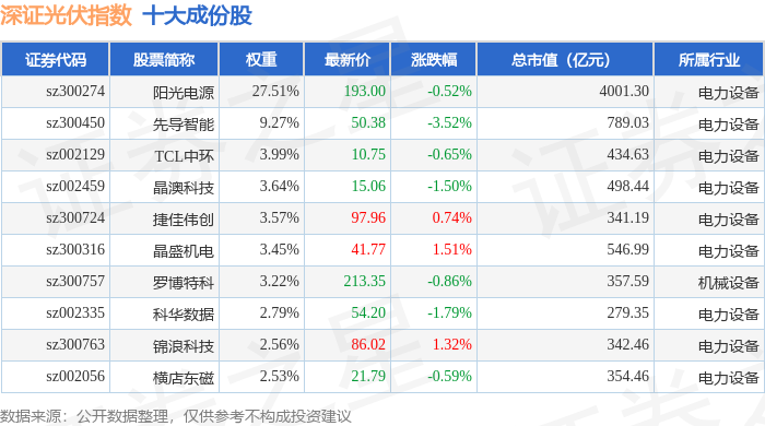 深证光伏(970035)指数十大成份股详情如下: