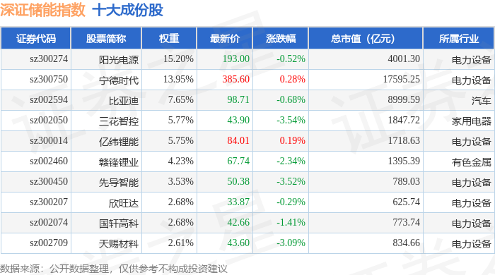 深证储能(970036)指数十大成份股详情如下:
