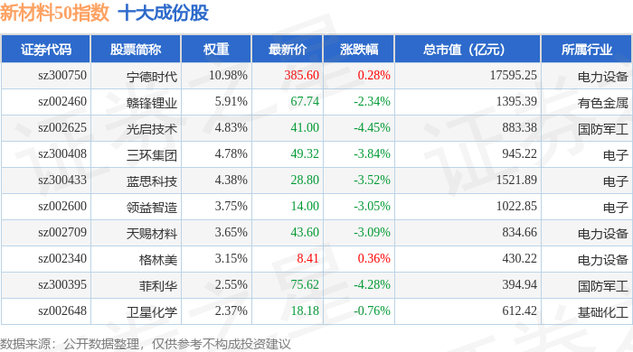 资金流向方面,新材料50(970042)指数成份股当日主力资金净流出合计36.23亿元,游资资金净流入合计7.18亿元,散户资金净流入合计29.05亿元。成份股资金流向详情见下表: