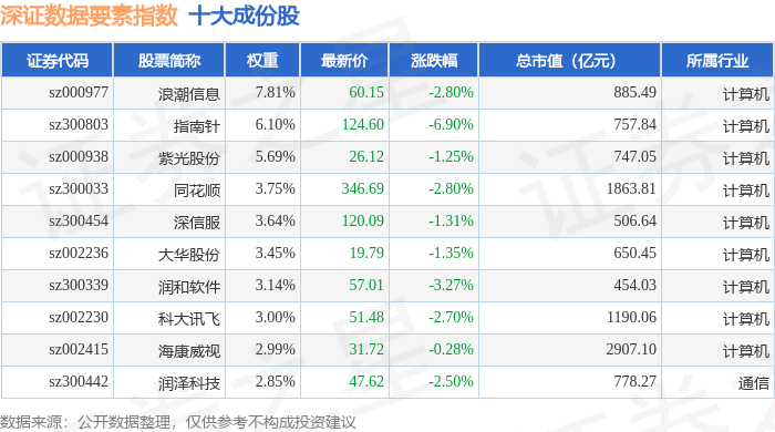 资金流向方面,深证数据要素(970053)指数成份股当日主力资金净流出合计49.59亿元,游资资金净流入合计14.3亿元,散户资金净流入合计35.29亿元。成份股资金流向详情见下表: