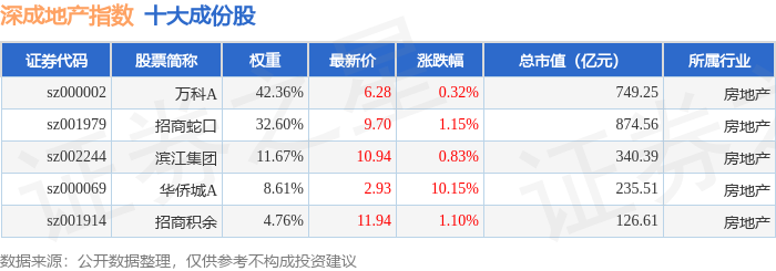 证券之星消息,11月11日,深成地产(971001)指数报收于498.02点,涨1.61%,成交24.51亿元,换手率1.79%。当日该指数成份股中,上涨的有5家,华侨城A以10.15%的涨幅领涨。