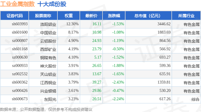 证券之星消息,11月11日,工业金属(980043)指数报收于2748.14点,跌0.96%,成交462.15亿元,换手率2.35%。当日该指数成份股中,上涨的有12家,国城矿业以9.99%的涨幅领涨,下跌的有37家,中孚实业以5.61%的跌幅领跌。