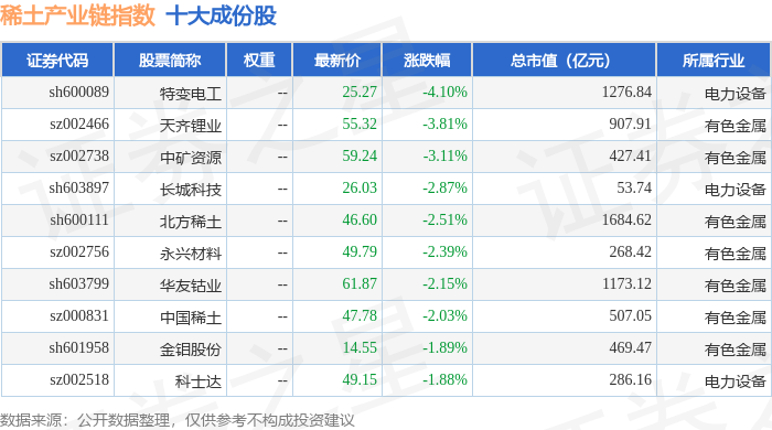 资金流向方面,稀土产业链(989013)指数成份股当日主力资金净流出合计45.29亿元,游资资金净流入合计7.56亿元,散户资金净流入合计37.72亿元。成份股资金流向详情见下表: