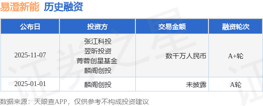 证券之星消息,根据天眼查APP于11月7日公布的信息整理,成都易澄新能源科技有限公司A+轮融资,融资额数千万人民币,参与投资的机构包括张江科投,翌昕投资,菁蓉创星基金 ,麟阁创投。