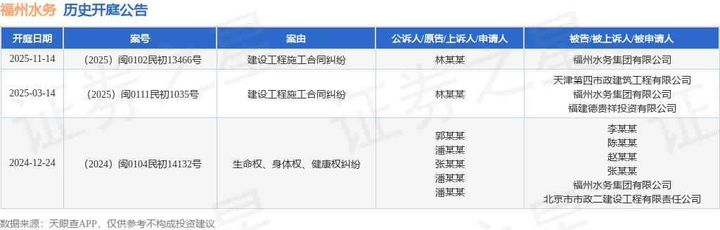 证券之星消息,根据天眼查APP显示,近日公布了一则福州水务集团有限公司作为被告/被上诉人的开庭公告,详细内容如下:
