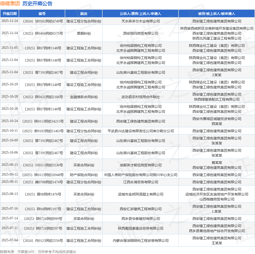 证券之星消息,根据天眼查APP显示,近日公布了一则西安建工绿色建筑集团有限公司作为被告/被上诉人的开庭公告,详细内容如下: