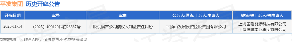 根据统计,近一年内以平顶山发展投资控股集团有限公司为当事人的历史开庭公告有1则,其中案由为“股东损害公司债权人利益责任纠纷”的公告以1则居首。历史开庭公告如下: