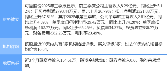 今日可靠股份(301009)涨6.39%,收盘报14.82元。