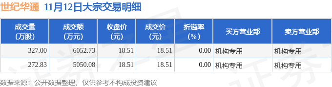 证券之星消息,11月12日世纪华通发生大宗交易,交易数据如下: