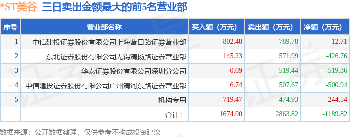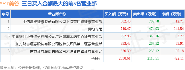 证券之星消息,沪深交易所2025年11月12日公布的交易公开信息显示,*ST美谷(000615)因连续三个交易日内,涨幅偏离值累计达到12%的ST证券、*ST证券和未完成股改证券登上龙虎榜。此次是近5个交易日内第1次上榜。