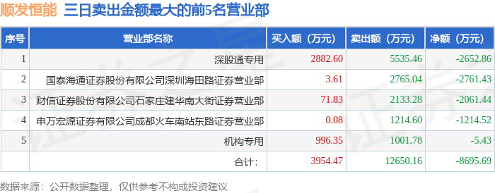 截至2025年11月12日收盘,顺发恒能(000631)报收于3.95元,上涨10.03%,已连续涨停2天,换手率6.61%,成交量158.25万手,成交额6.18亿元。