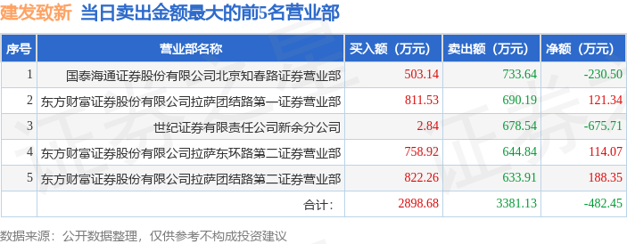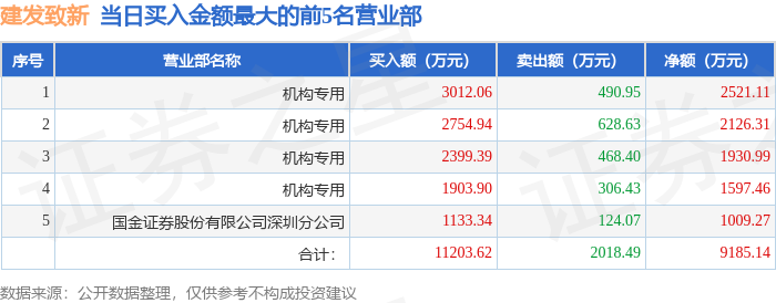 证券之星消息,沪深交易所2025年11月12日公布的交易公开信息显示,建发致新(301584)因日换手率达到30%的前5只证券登上龙虎榜。此次是近5个交易日内第1次上榜。