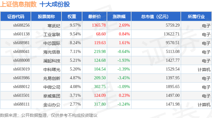 上证信息(000039)指数十大成份股详情如下: