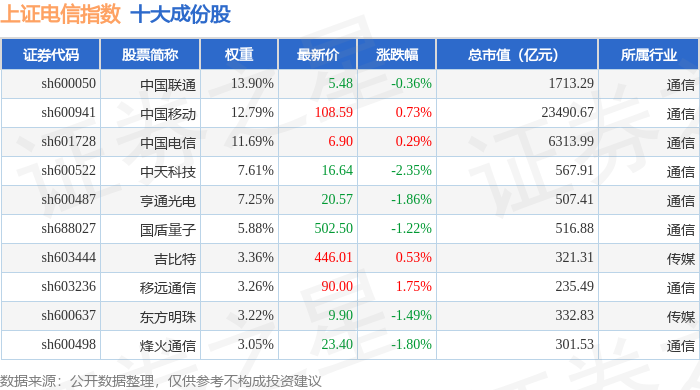 资金流向方面,上证电信(000040)指数成份股当日主力资金净流出合计8.59亿元,游资资金净流入合计2.85亿元,散户资金净流入合计5.74亿元。成份股资金流向详情见下表: