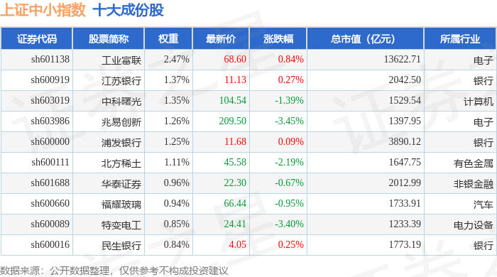 上证中小(000046)指数十大成份股详情如下: