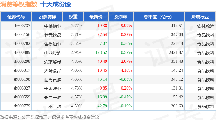 证券之星消息,11月12日,消费等权(000074)指数报收于7576.1点,涨1.34%,成交175.0亿元,换手率1.0%。当日该指数成份股中,上涨的有20家,中粮糖业以9.99%的涨幅领涨,下跌的有10家,海南橡胶以0.99%的跌幅领跌。