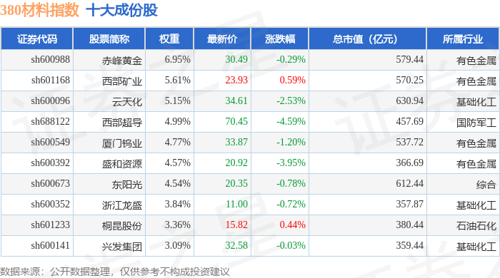 证券之星消息,11月12日,380材料(000105)指数报收于5205.22点,跌0.79%,成交257.93亿元,换手率1.95%。当日该指数成份股中,上涨的有22家,明泰铝业以3.24%的涨幅领涨,下跌的有27家,华新建材以5.79%的跌幅领跌。