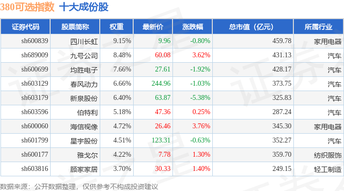 资金流向方面,380可选(000107)指数成份股当日主力资金净流出合计2.02亿元,游资资金净流出合计4841.36万元,散户资金净流入合计2.51亿元。成份股资金流向详情见下表: