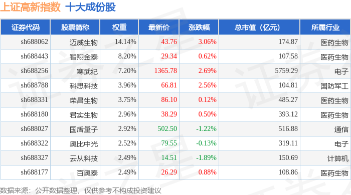 证券之星消息,11月12日,上证高新(000131)指数报收于3636.5点,涨0.23%,成交337.8亿元,换手率1.8%。当日该指数成份股中,上涨的有14家,英方软件以8.61%的涨幅领涨,下跌的有36家,虹软科技以8.83%的跌幅领跌。