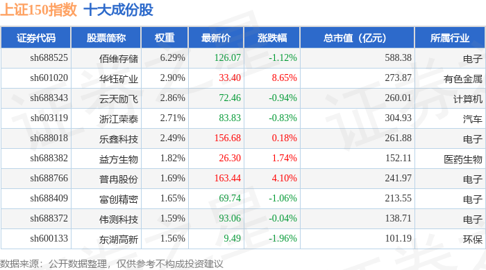 上证150(000133)指数十大成份股详情如下: