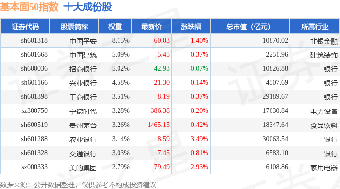 证券之星消息,11月12日,基本面50(000925)指数报收于4747.69点,涨0.45%,成交972.94亿元,换手率0.34%。当日该指数成份股中,上涨的有30家,中国人保以4.01%的涨幅领涨,下跌的有19家,中国电建以2.05%的跌幅领跌。