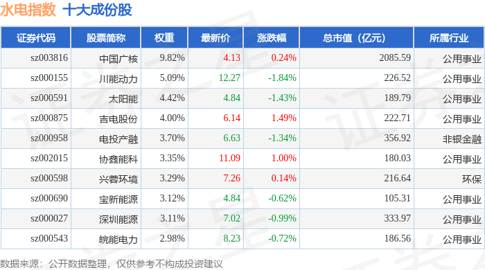 水电指数(399234)十大成份股详情如下: