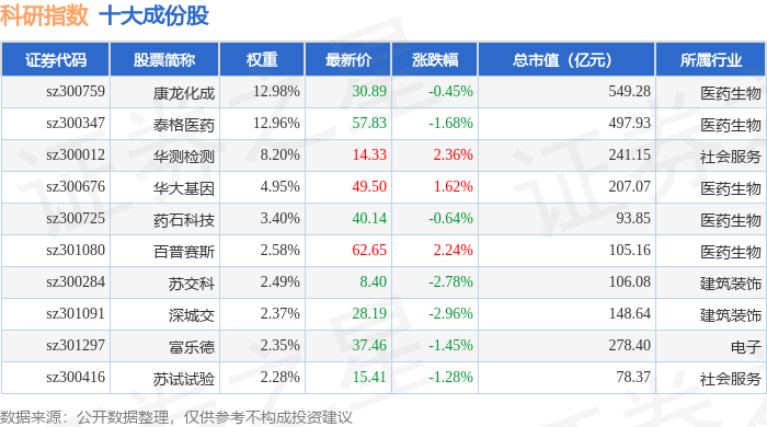 证券之星消息,11月12日,科研指数(399243)报收于1494.43点,跌0.19%,成交88.66亿元,换手率2.1%。当日该指数成份股中,上涨的有25家,山水比德以6.22%的涨幅领涨,下跌的有40家,国缆检测以7.33%的跌幅领跌。