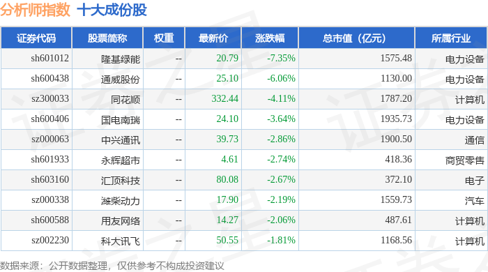 资金流向方面,分析师指数(399354)成份股当日主力资金净流出合计42.64亿元,游资资金净流入合计9.81亿元,散户资金净流入合计32.83亿元。成份股资金流向详情见下表: