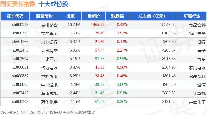国证责任(399369)指数十大成份股详情如下: