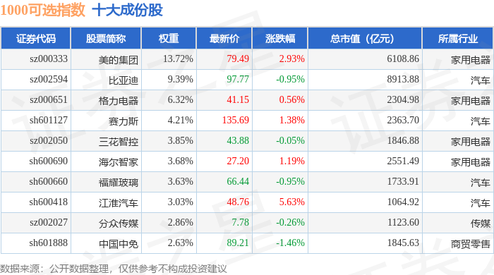 1000可选(399384)指数十大成份股详情如下: