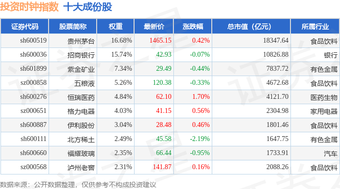 投资时钟(399391)指数十大成份股详情如下: