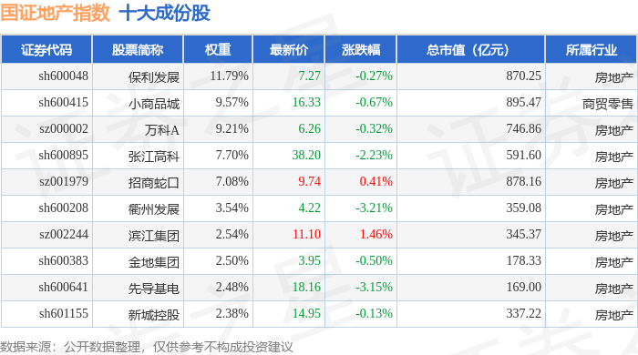 证券之星消息,11月12日,国证地产(399393)指数报收于3389.75点,跌0.49%,成交158.01亿元,换手率1.94%。当日该指数成份股中,上涨的有13家,顺发恒能以10.03%的涨幅领涨,下跌的有35家,盈新发展以5.92%的跌幅领跌。