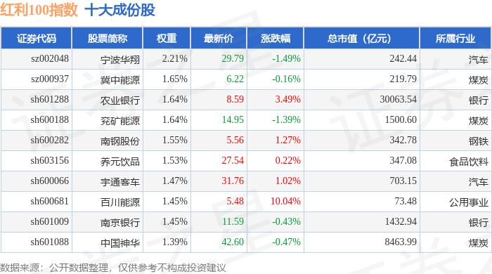 红利100(399411)指数十大成份股详情如下: