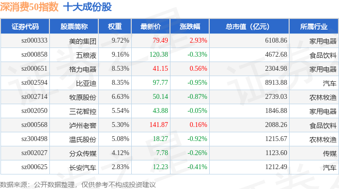 资金流向方面,深消费50(399646)指数成份股当日主力资金净流出合计12.97亿元,游资资金净流入合计1.85亿元,散户资金净流入合计11.11亿元。成份股资金流向详情见下表: