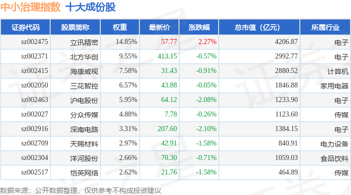 证券之星消息,11月12日,中小治理(399650)指数报收于2555.93点,跌0.33%,成交477.93亿元,换手率1.56%。当日该指数成份股中,上涨的有18家,老板电器以2.62%的涨幅领涨,下跌的有31家,晶澳科技以6.84%的跌幅领跌。