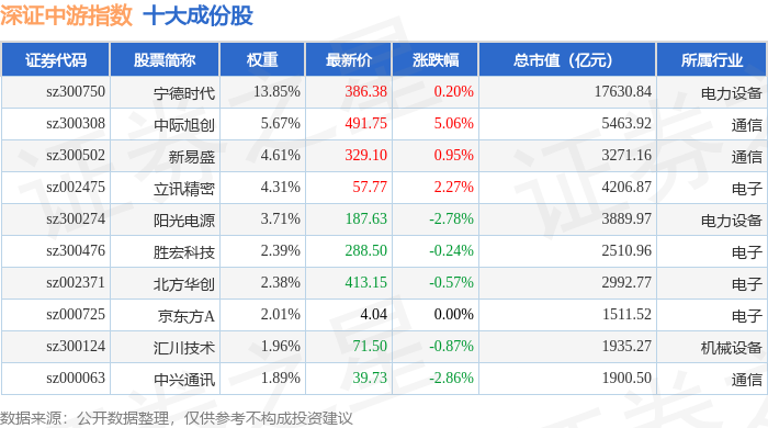 深证中游(399705)指数十大成份股详情如下: