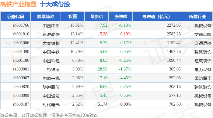 资金流向方面,高铁产业(399807)指数成份股当日主力资金净流出合计7.25亿元,游资资金净流入合计2.86亿元,散户资金净流入合计4.39亿元。成份股资金流向详情见下表: