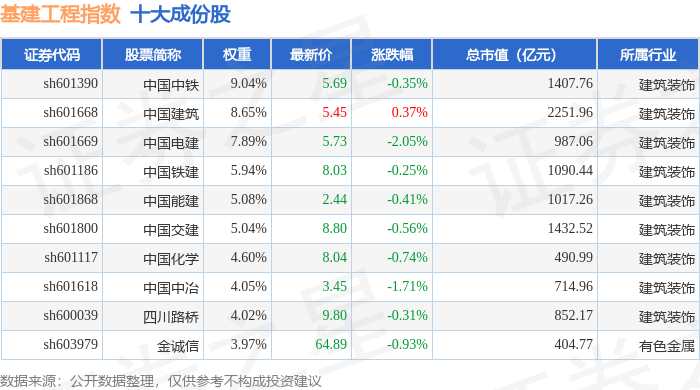 基建工程(399995)指数十大成份股详情如下: