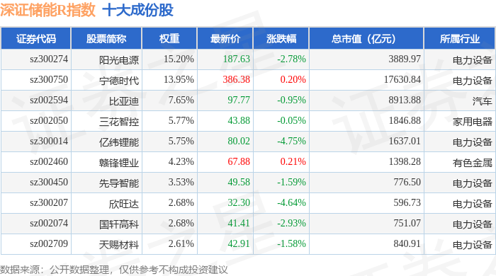 资金流向方面,深证储能R(470036)指数成份股当日主力资金净流出合计48.04亿元,游资资金净流入合计12.56亿元,散户资金净流入合计35.48亿元。成份股资金流向详情见下表: