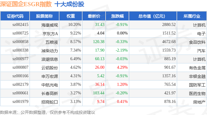 深证国企ESGR(470055)指数十大成份股详情如下: