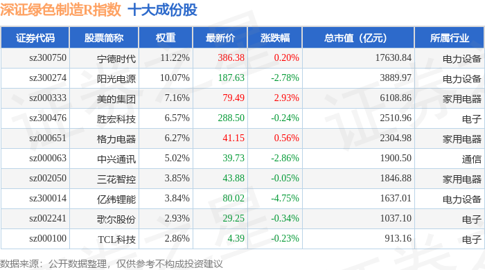 深证绿色制造R(470069)指数十大成份股详情如下: