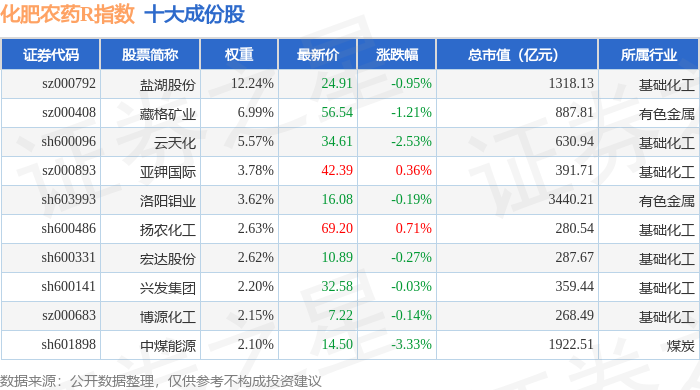 资金流向方面,化肥农药R(480035)指数成份股当日主力资金净流出合计14.63亿元,游资资金净流入合计3.79亿元,散户资金净流入合计10.84亿元。成份股资金流向详情见下表:
