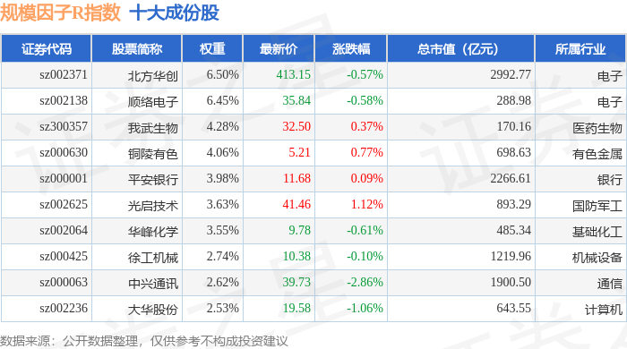 规模因子R(480055)指数十大成份股详情如下: