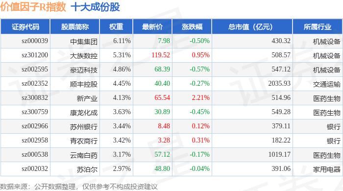 资金流向方面,价值因子R(480056)指数成份股当日主力资金净流出合计1.88亿元,游资资金净流出合计6855.44万元,散户资金净流入合计2.56亿元。成份股资金流向详情见下表: