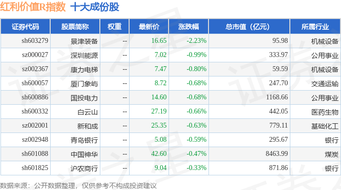 红利价值R(489016)指数十大成份股详情如下: