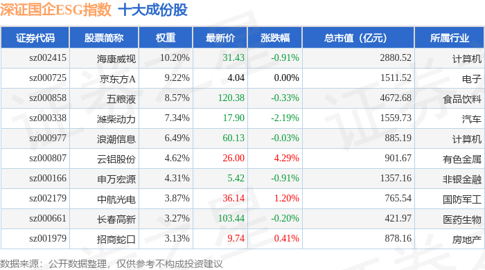 深证国企ESG(970055)指数十大成份股详情如下: